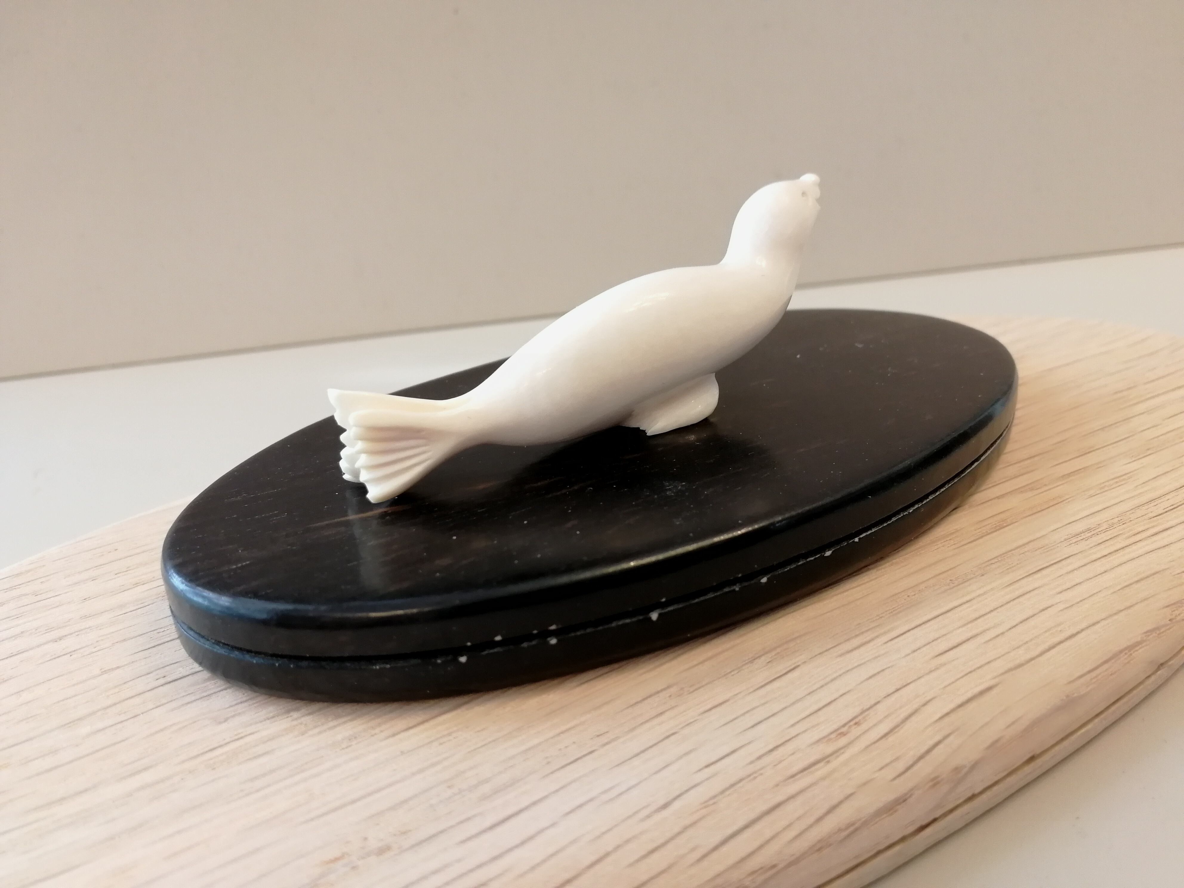 ナンタケットバスケット用 アザラシ・カービング 凜とした立体的な存在感、 あふれるカービングです! 白い天然素材です〜 size 横幅67 縦13 高さ18㎜ 入荷が難しい作品です~ 制作が難しくsize、デザイン、 顔の表情などが、微妙に異なることがございます。 ご了承くださいますように。